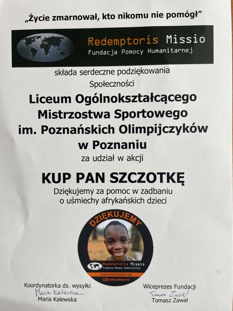 W marcu w Liceum Ogólnokształcącego Mistrzostwa Sportowego zakończyła się akcja charytatywna „Kup Pan Szczotkę”, prowadzonej przez szkolny wolontariat. Celem zbiórki było wsparcie dzieci z krajów