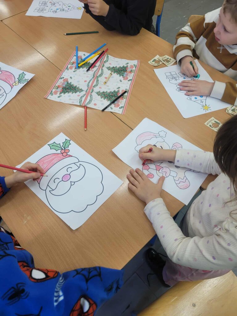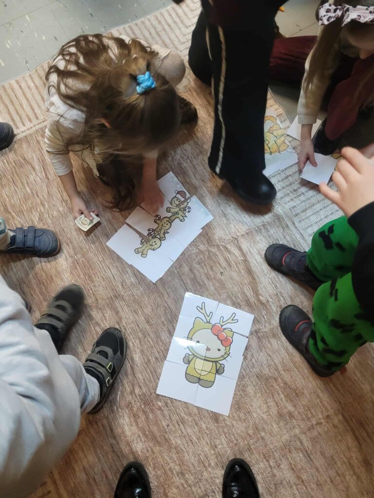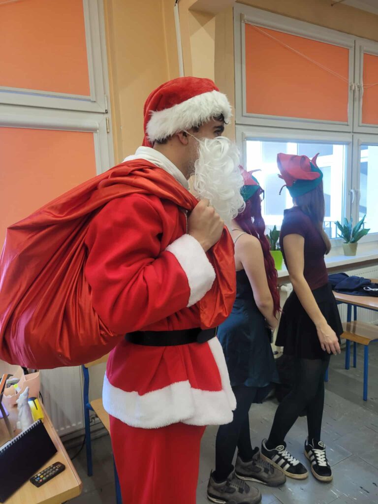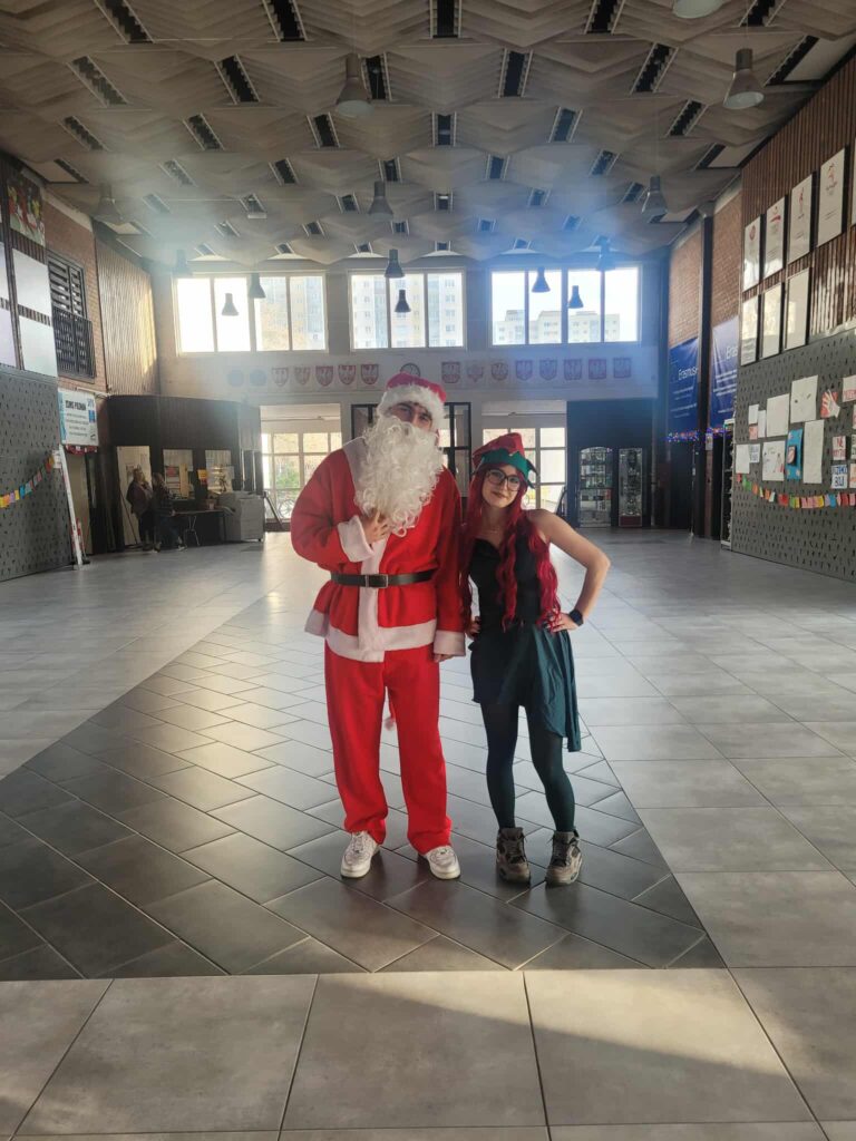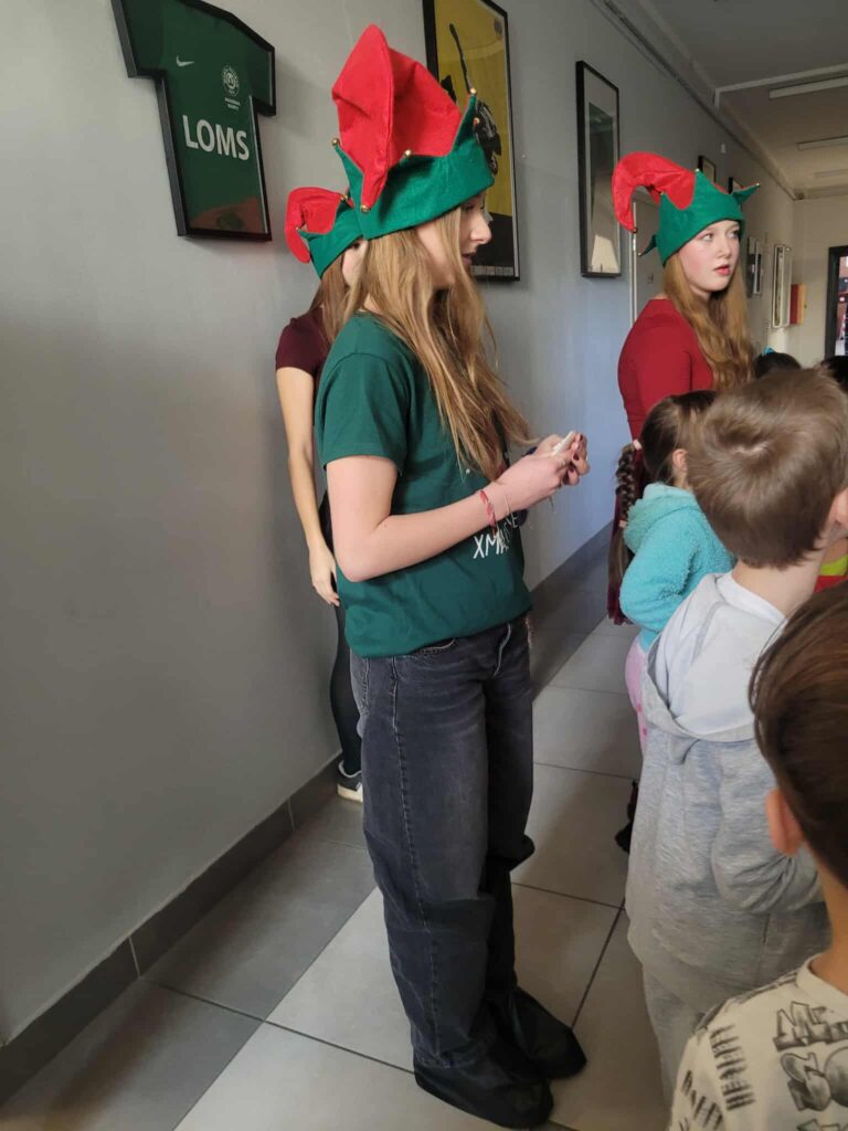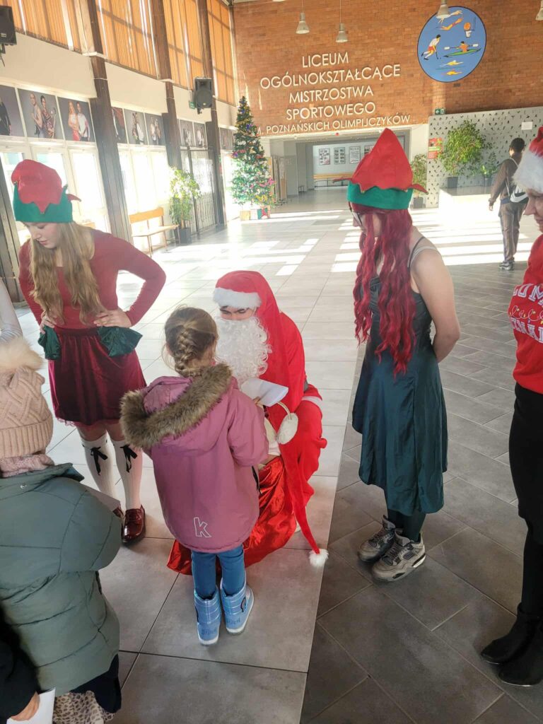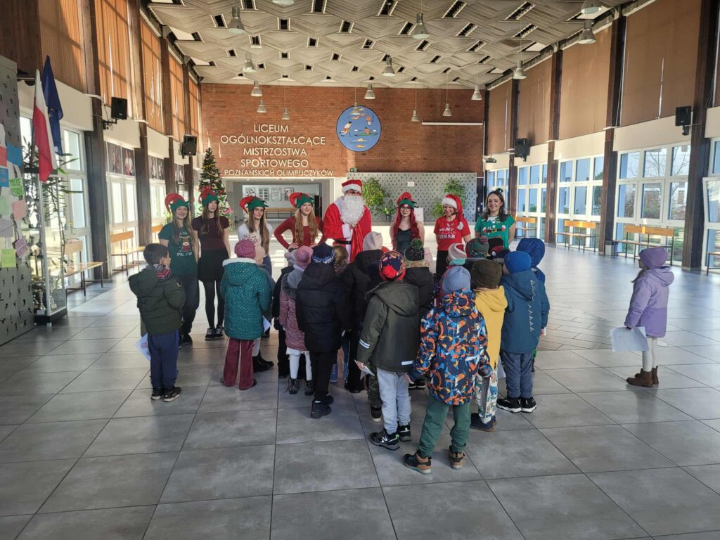 Dziś 11.12.2025 odbyła się III edycja z cyklu „Świąteczne Animacje w LOMS dla przedszkolaków”. Samorząd Uczniowski gościł dziś przedszkolaki z zaprzyjaźnionego Przedszkola nr 160 im. Orła Białego. Na dzieci czekało mnóstwo atrakcji. Mikołaj zwrócił się do nich z prośbą o pomoc w odnalezieniu 5 elfów, które mu uciekły, a jak wiadomo bez elfów nie ma zabawek na Święta. Dzieci z ochotą ruszyły na poszukiwania, a przy okazji zwiedzały nasze liceum. Elfy miały przygotowane dla dzieci zadania i tylko pod warunkiem ich wypełnienia mogły zgodzić się na powrót do Mikołaja. Zadania dla przedszkolaków obejmowały: uważne wysłuchanie bajki i odpowiedź na pytania do tekstu, świąteczny taniec, ułożenie puzzli, piękne pokolorowanie obrazków oraz śpiew kolęd. Trzeba przyznać, że przedszkolaki poradziły sobie wspaniale i bawiły się tak dobrze, że nie chciały opuszczać murów naszej szkoły i zapowiedziały, że wrócą do nas, ale w roli uczniów 😉 Mikołaj obdarował dzieci drobnymi upominkami, a elfy radośnie pomachały im na pożegnanie.